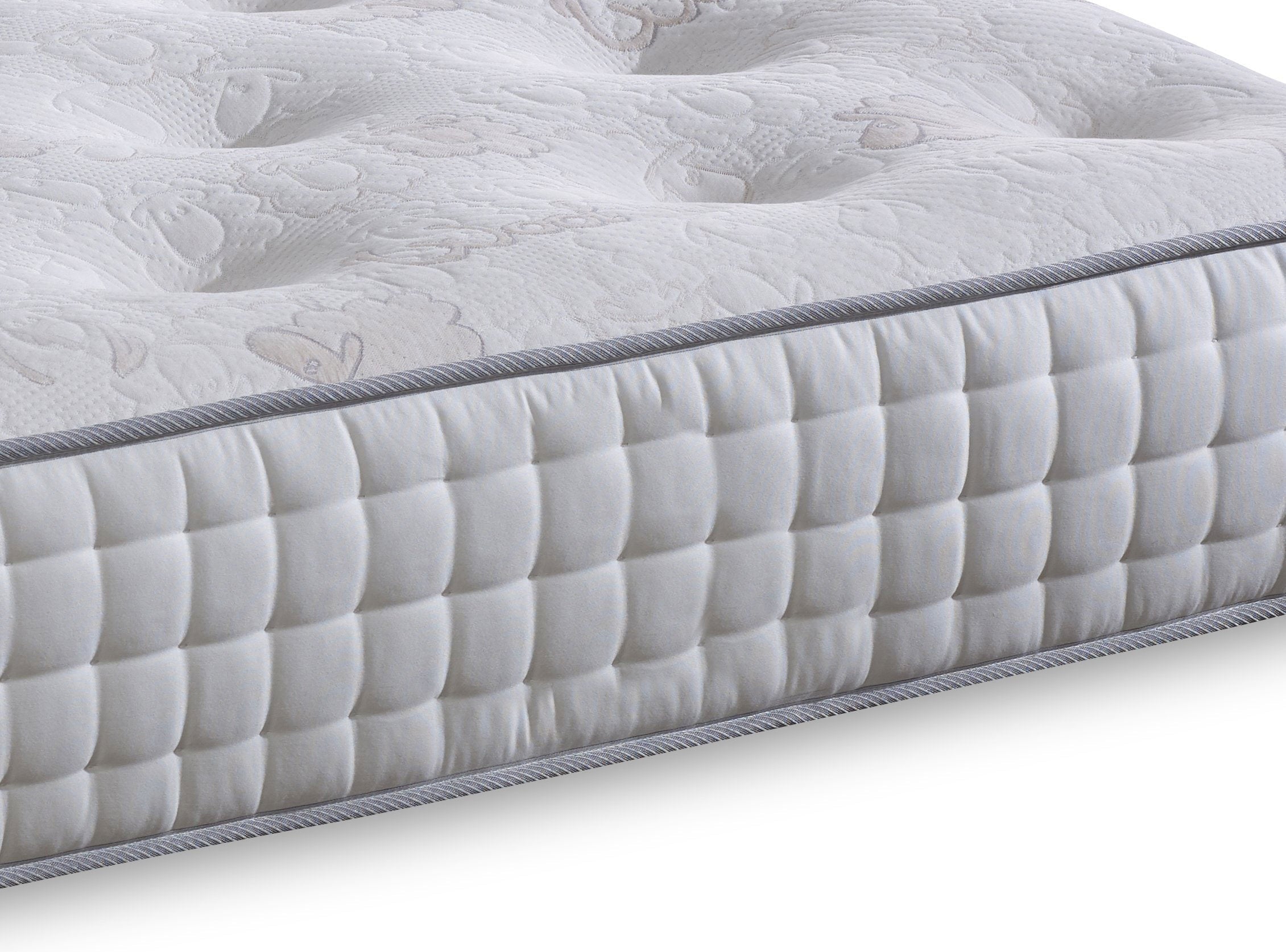 Finished in a luxurious Damask fabric cover and benefiting from being hand tufted and stitched. Three rows of intricate hand-stitching on the mattress border, with handles and air vents, complete this beautiful mattress.